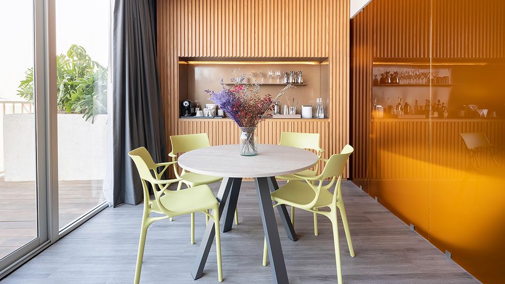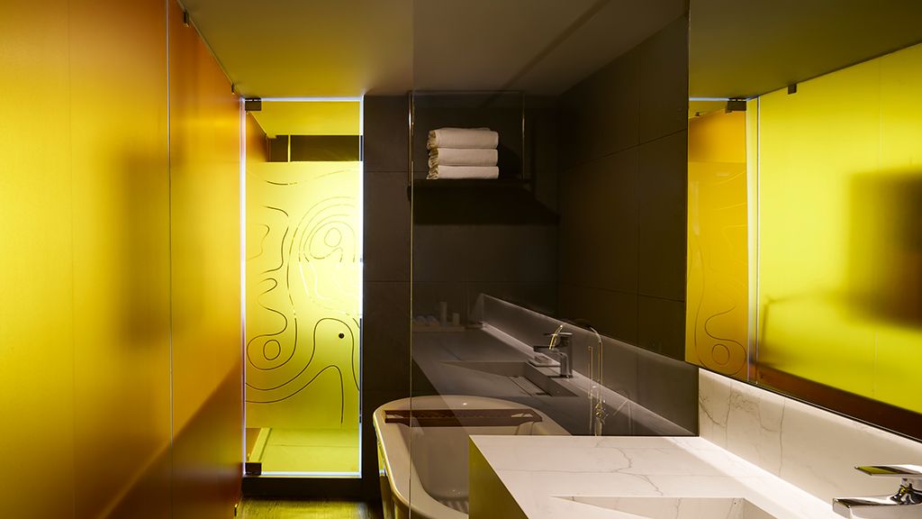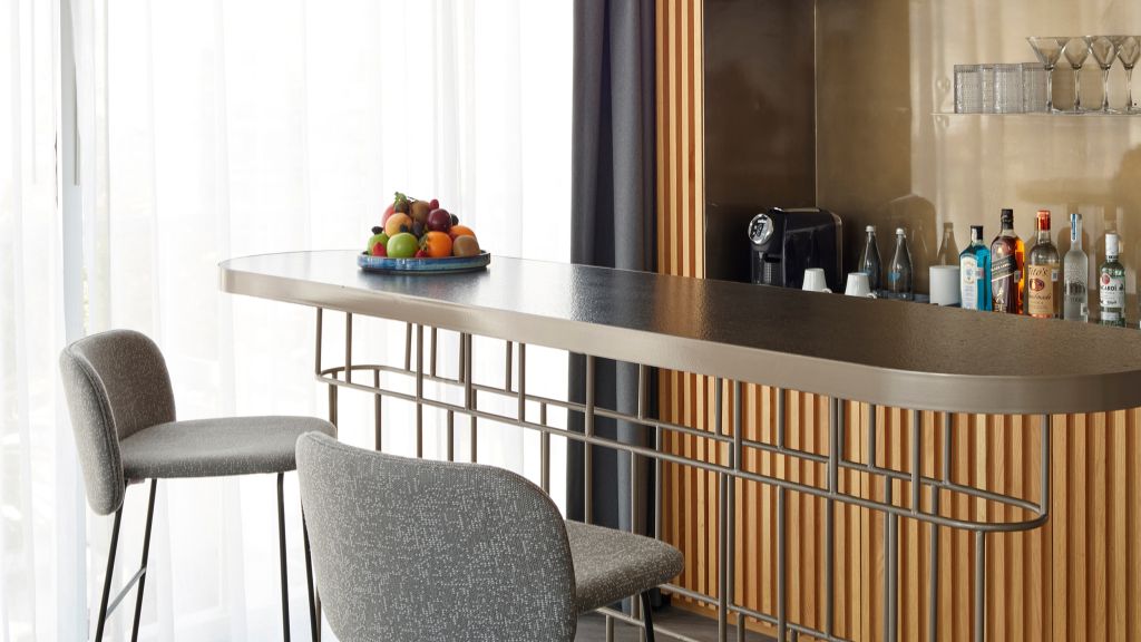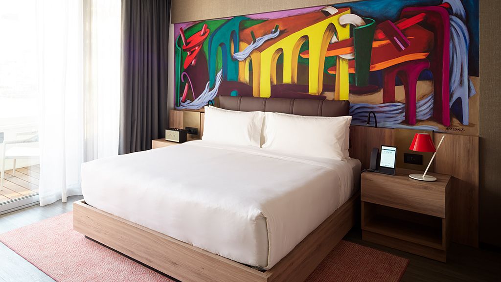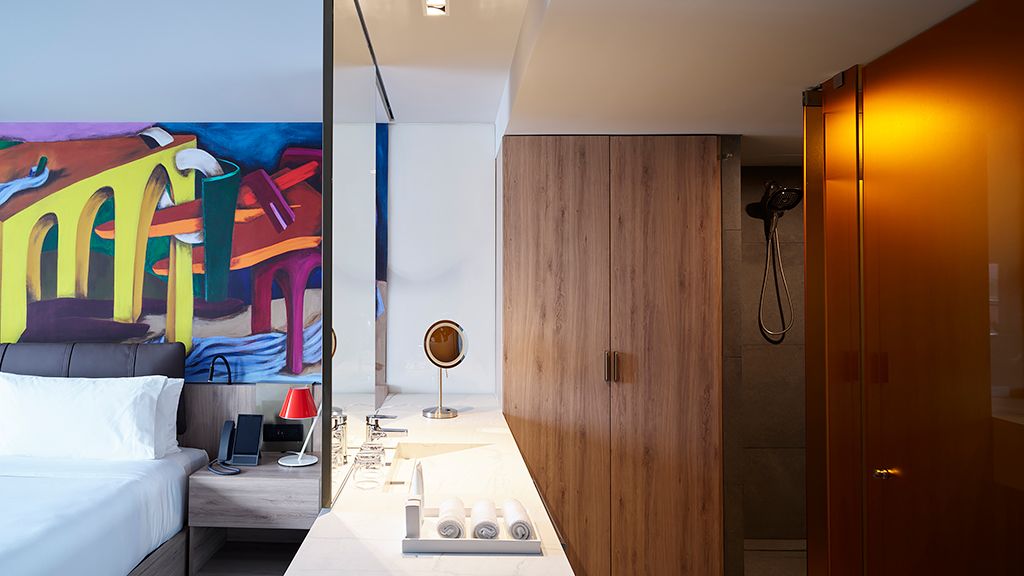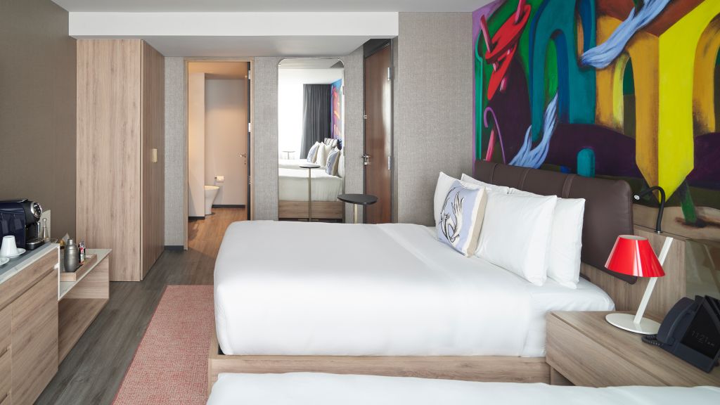 The hotel sits within the iconic l421 Live District, an architectural masterpiece by the renowned José Luis Benlliure. Behind the storied façade, one will find 183 tastefully appointed accommodations, including 18 opulent suites. Each of these private havens features bespoke furnishings, Marshall speakers, Lavazza coffee machines, and unique art pieces by Ara Starck.