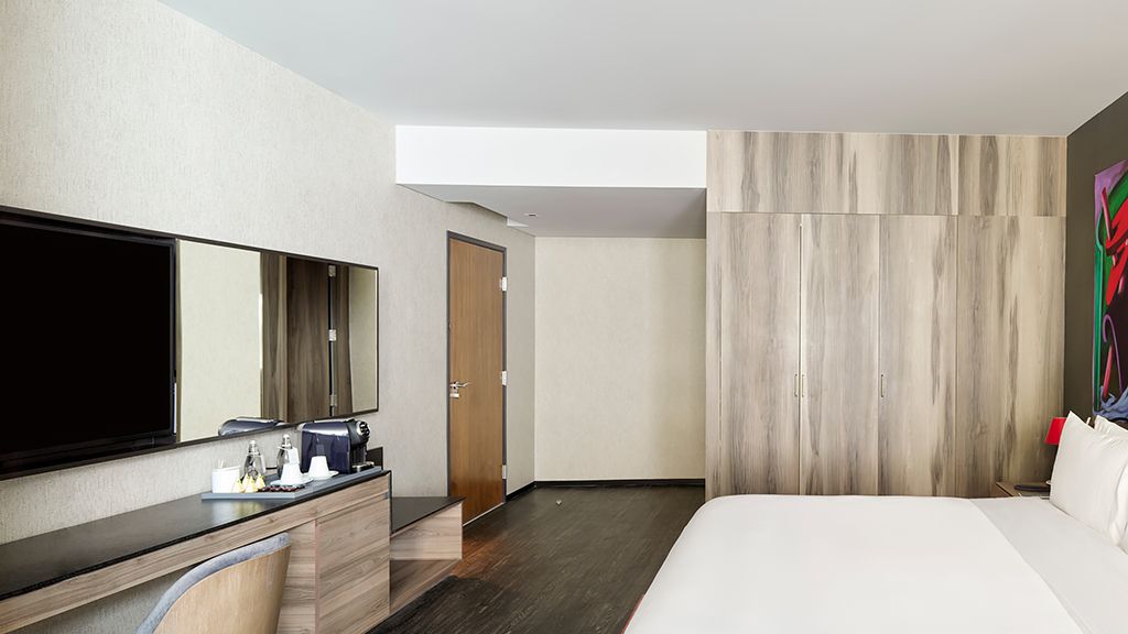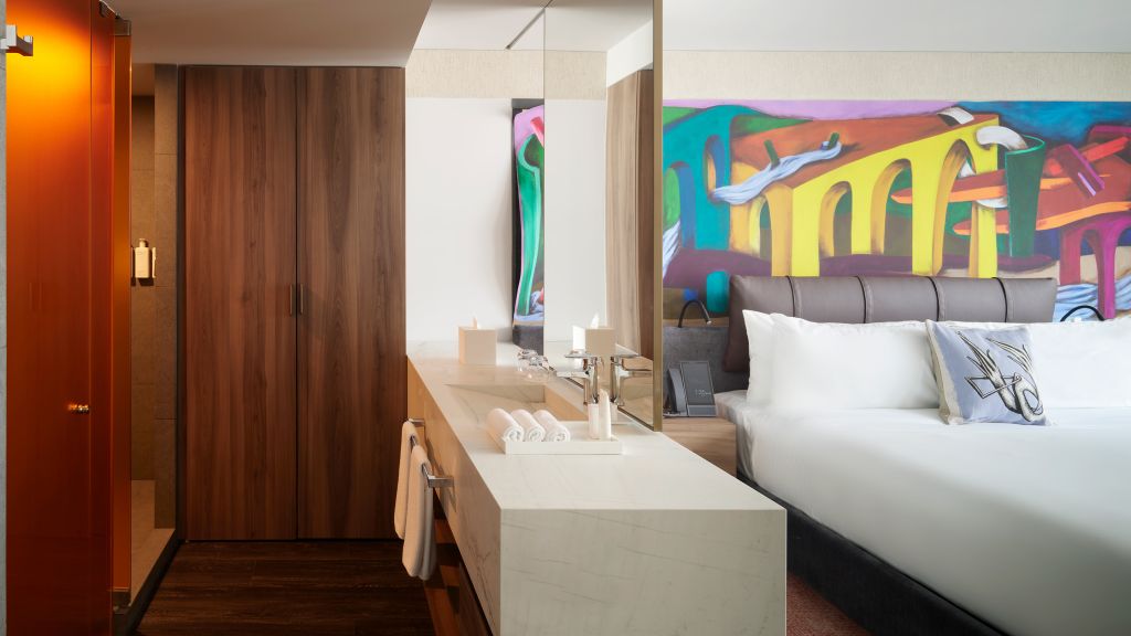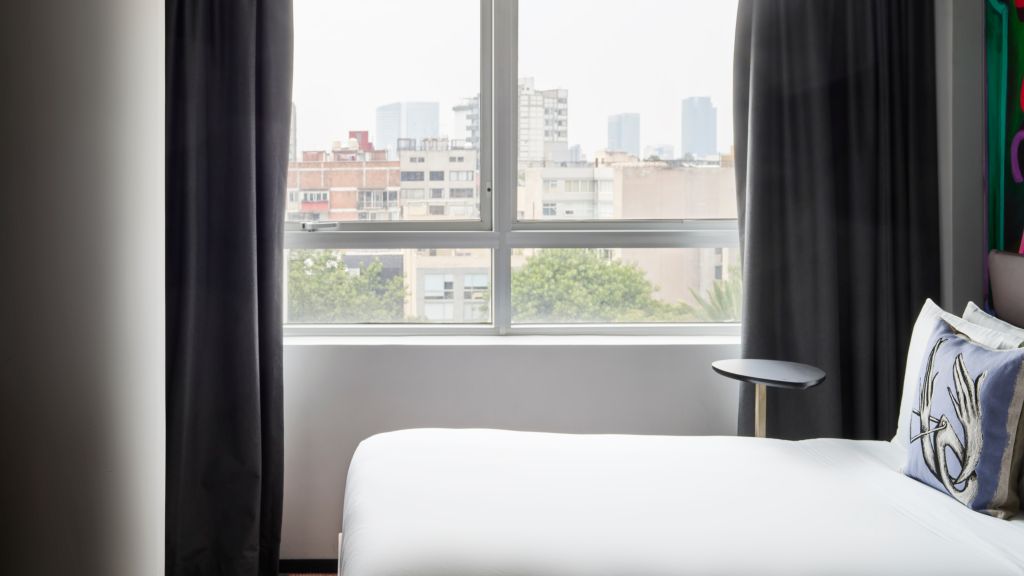 Mondrian’s superior skyline king room offers an unforgettable view of the mexico city skyline and the bustling cultural district below.