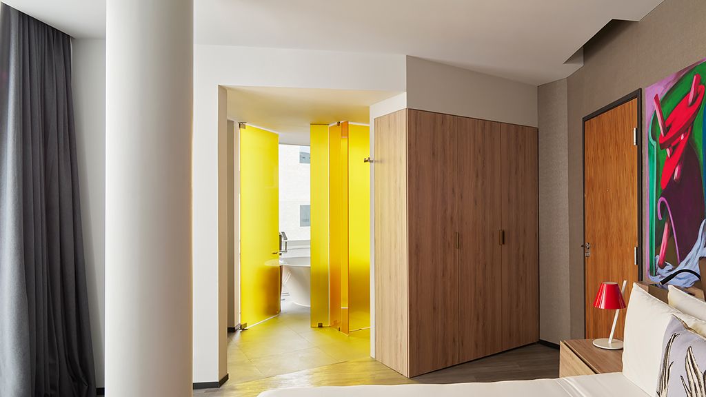 The condesa balcony suite, located on the eighth floor of mondrian condesa, includes a king bed.