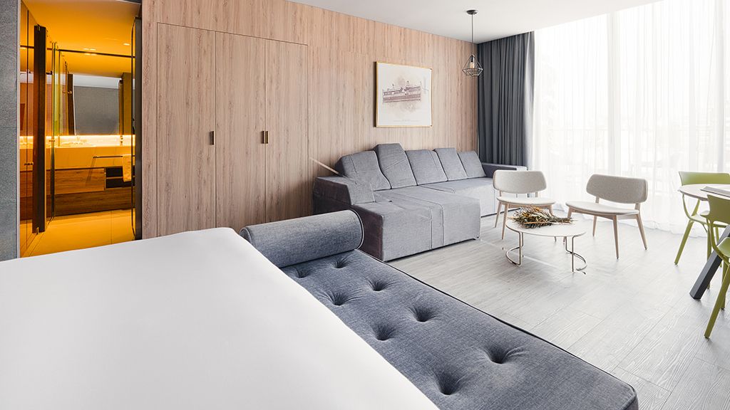 Enjoy a luxurious stay in the corner suite, offering two unique suites with special layouts.