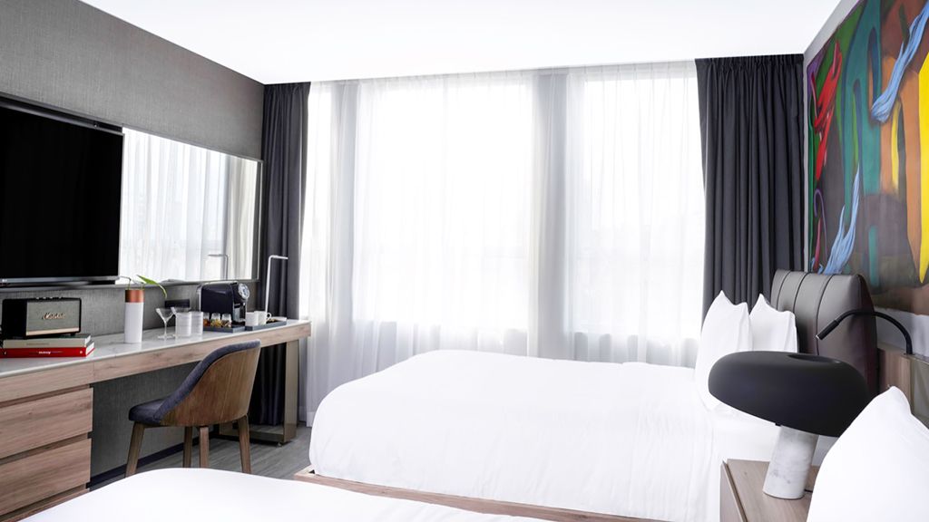 Unwind and relax in the superior skyline double double room, a spacious setting with two queen beds.