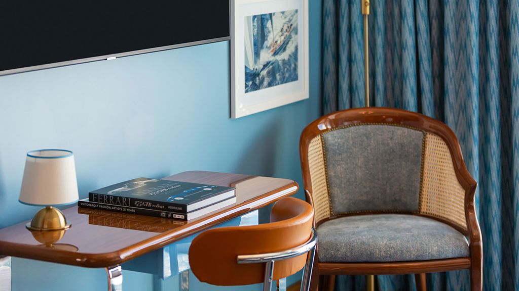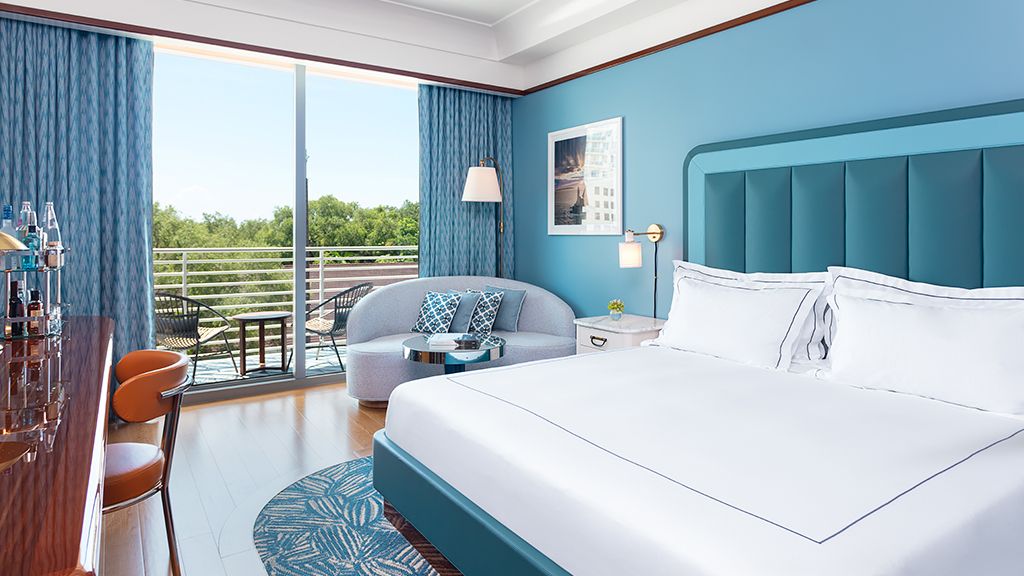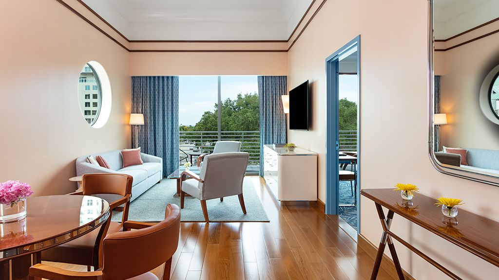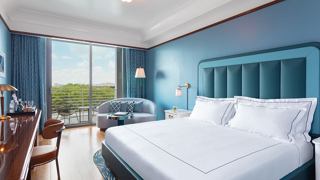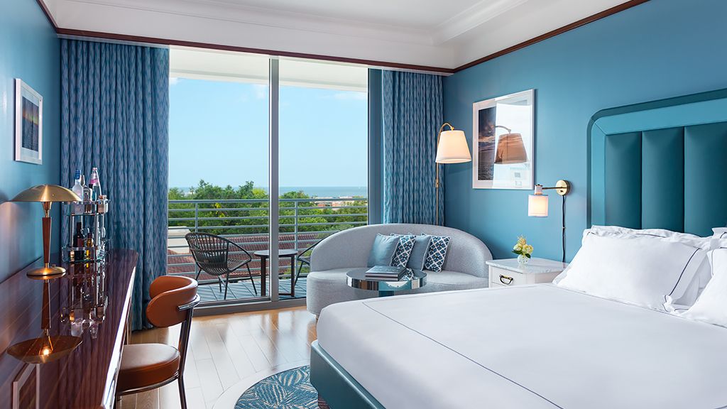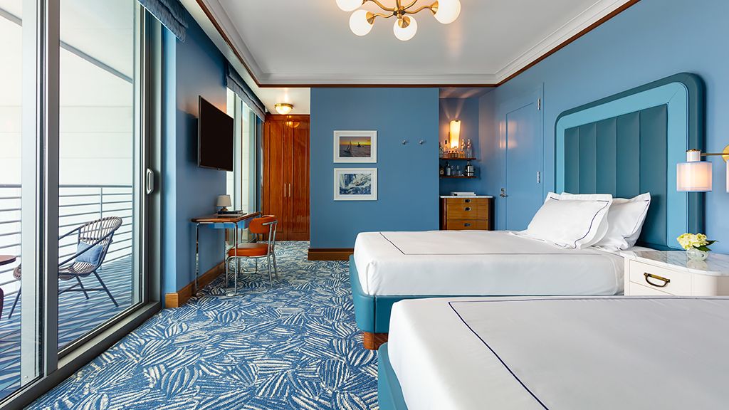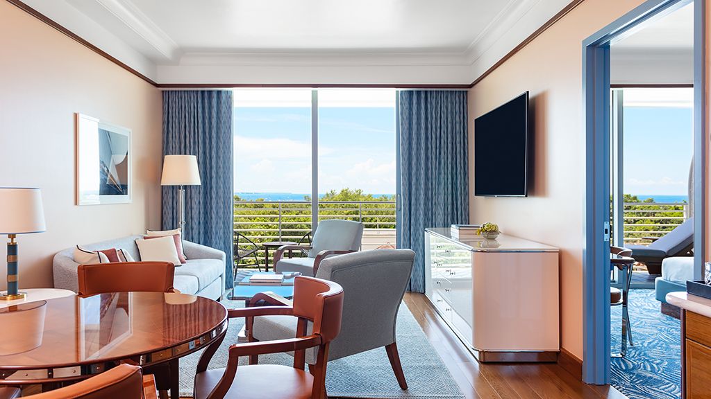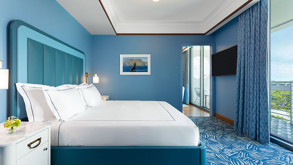 Suite with king bed, double balconies and bay views. Located on floors 2 & 4.