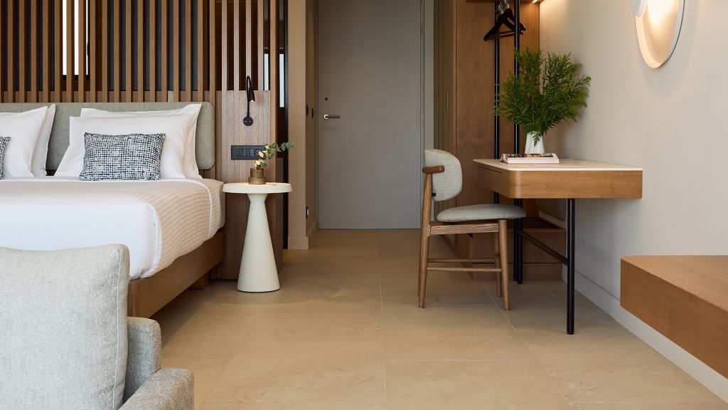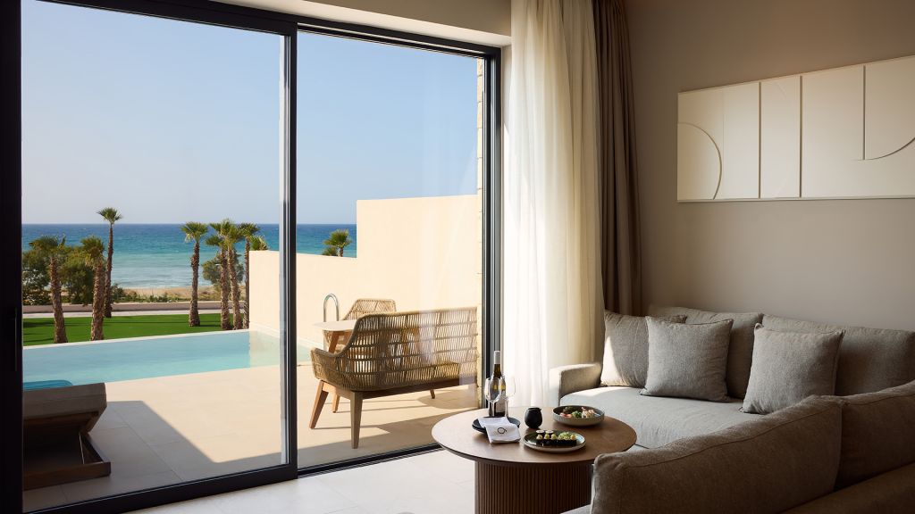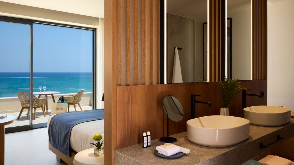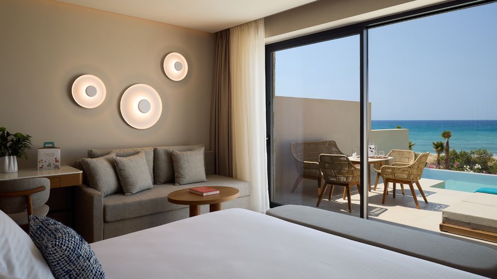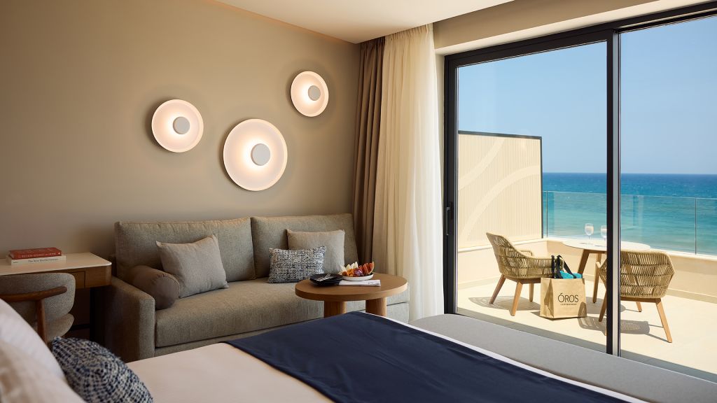OROS Luxury Beach Resort sits between the mountains and the sea on the Greek Isle of Crete, offering a modern, open-air escape shaped by sunlit stone, olive groves, and a horizon that feels endless.