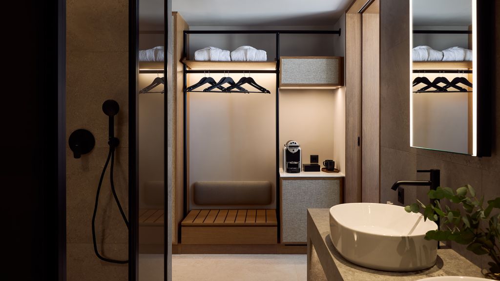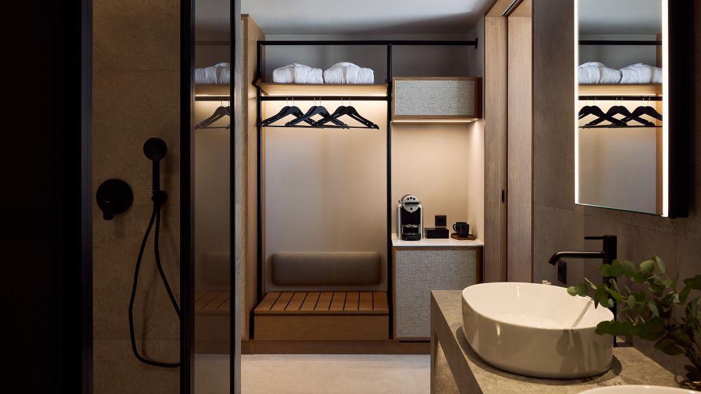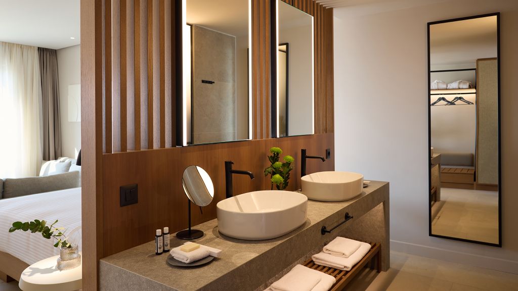 Individually controlled air conditioning, minibar, 55 inches TV, safe, tea cattle and Nespresso machine, iron and ironing board, bathroom with walk-in shower and double sink, bathrobe and slippers.