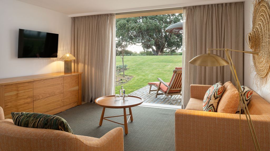 Praia do Canal sits like a sandstone monolith at the heart of the nature reserve, fringed by a dreamy infinity pool and manicured gardens. This modern and minimalist look strikes a delightful contrast with the surrounding nature, providing a calming backdrop for rest and rejuvenation.