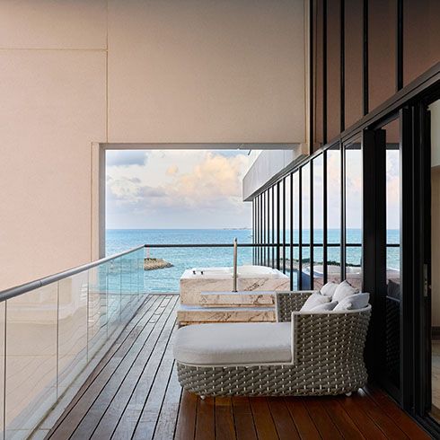 Delight in sparkling sea views with family or friends in a double queen room that is the ultimate escape. Featuring a spacious ensuite bath and luxe decor, the room's private balcony is irresistible in the breeze at dusk, with a cocktail in hand.