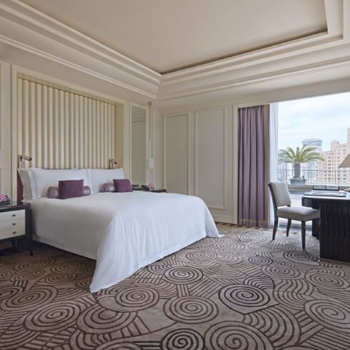 Expansive grand deluxe river view rooms feature full length windows offering spectacular huangpu river and pudong skyline views. The welcoming lobby and exceptionally spacious and stylish living and sleeping areas give these rooms the grand feeling of an elegant suite. Bright and airy - the space is decorated in modern style with subtle oriental influences. Room features include high ceilings and a comfortable sitting area. The large marble bathroom features a bathtub with spa jets plus a built-in tv - radio and telephone with hands-free controls - a separate walk-in shower and a spacious dressing room with a weather panel. Sumptuous bedding includes one king-size hollywood bed with a pillow top mattress - luxury linens - a comfortable duvet and bedside controls. Room amenities include complimentary high-speed cabled and wireless internet access - complimentary international calls - a large desk with an all-in-one printer / copier / fax / scanner plus an ipad for guest use while at the hotel. Entertainment options include a premium stereo with cd player - a widescreen lcd hdtv - dvd player plus premium and movie channels. Added amenities include tablet room controls - a well-stocked mini-bar - a nespresso premium coffee maker - complimentary bottled water - a notebook %-size personal safe - an ipod dock - newspaper delivered daily - a fruit basket plus a welcome amenity. Butler service is available by call button for an added fee. All rooms are non-smoking. Room size is 71-89 square meters / 764-958 square feet. Maximum occupancy is 3 persons using 1 extra bed on request. Some of these rooms connect to a deluxe river room or the astor suite on a request basis.