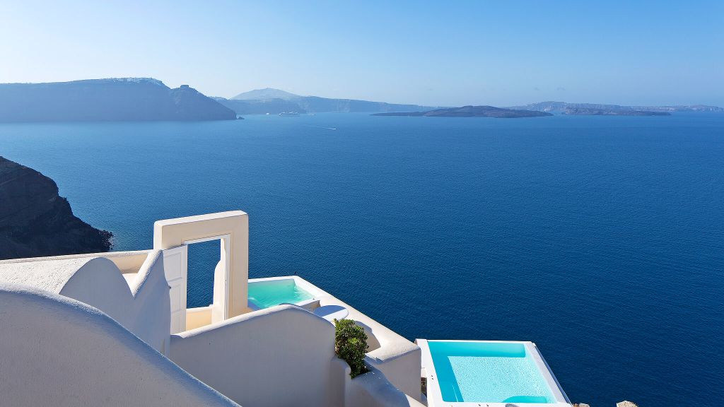 Worthy of its own Pantone shade, Aegean blue, the sparkling cyan-colored waters surrounding the islands of Greece are enjoyed from every angle—get a bird’s-eye view from a cliffside infinity pool in Santorini or dig your feet into the sand at sea level in Mykonos.